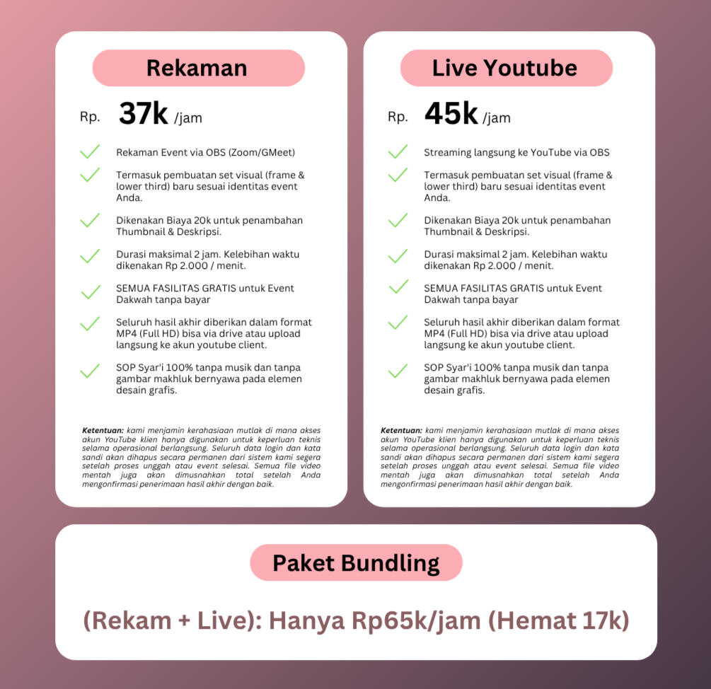 Lagi butuh editor video yang paham batasan tapi tetap jago bikin konten eye-catching? Kami siap bantu! Dari video jualan sampai company profile, semuanya dikerjakan sesuai syariat Islam.